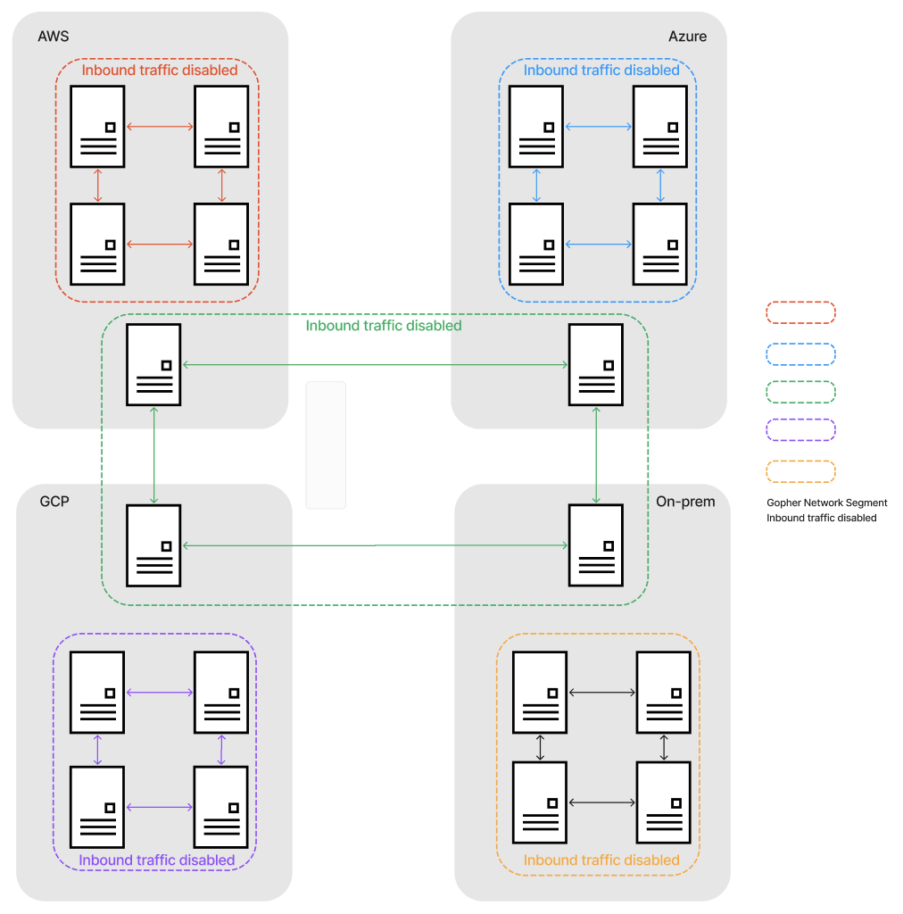 Gopher SEG: Access control is enforced easily with Gopher SEG, where nodes can only communicate if they hold mutually agreed-upon keys. This ensures that access is tightly controlled and aligned with business requirements.